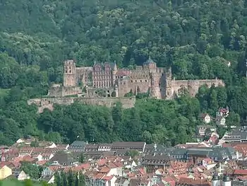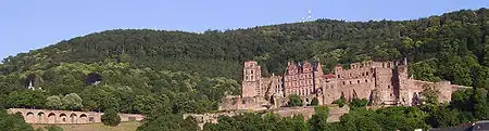 As ruínas do conjunto, um dos mais importantes edifícios renascentistas a norte dos Alpes, erguem-se 80 metros acima da base do vale, na colina norte da Königstuhl, dominando a imagem da antiga cidade.