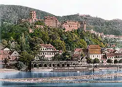A mais antiga descrição de Heidelberg, datada de 1465, menciona que a cidade é "frequentada por estrangeiros", mas esta não se tornaria, realmente, numa atracção turística antes do início do do século XIX. O Conde Graimberg fez do castelo um objecto permanente de gravuras, as quais se tornaram em precursoras dos cartões postais. Ao mesmo tempo, também passou a ser encontrado em copas de recordação. O turismo recebeu um grande impulso quando Heidelberg foi ligada à rede de caminho de ferro, em 1840.