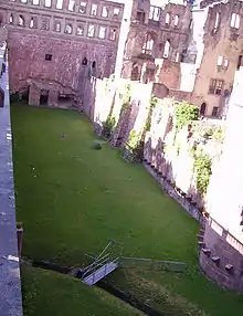 Em 1619, Frederico V, então um homem jovem, tomou a coroa dos Reis da Boémia, contra a vontade do imperador, e em 1687, Filipe Guilherme, Conde Palatino, então um homem idoso, assumiu o título de príncipe-eleitor, contra a vontade do Rei de França. Isto causou as batalhas de Heidelberg e tributações sem fim, a Guerra dos Trinta Anos, Gustav Adolfs Ruhmesblatt e finalmente a Guerra da Grande Aliança, a missão Turennes. Todos estes terríveis eventos degradaram o palácio. Três imperadores, Luís o Bávaro, Adolfo de Nassau e Leopoldo da Áustria, montaram-lhe cerco; Pio II condenou-o; Luís XIV devastou-o.[2]