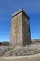 A torre de menagem apresenta planta de formato quadrangular, isolada ao centro do pátio de armas. Tanto ela quanto a muralha circundante, foram integralmente reconstruídas, depreendendo-se a sua característica românica apenas pelo desenho deste conjunto: uma sólida torre quadrada isolada no centro do recinto muralhado. A torre divide-se internamente em três pavimentos, iluminados por algumas frestas. O coroamento é feito por um remate em balcão com ameias, hoje requalificado como miradouro do museu arqueológico estabelecido nas dependências da torre.