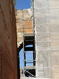 Em 28 de Julho de 2017, foi assinado o contrato para a empreitada dos trabalhos na torre albarrã, relativa ao restauro e conservação dos módulos de taipa almóada.[31] Previa-se que a obra iria demorar cerca de 124 dias e custar 131 mil Euros, e que seria terminada ainda no mesmo ano.[31] Esta operação foi considerada pioneira a nível nacional, sendo depois utilizada como precedente para futuras obras de restauro em edifícios com o mesmo tipo de taipa militar.[6][31] Previa-se que esta intervenção seria apenas a primeira fase de um processo maior, para a conservação total do monumento, que teria o valor aproximado de 590 mil Euros.[31]