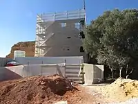 As paredes da torre são constituídas por onze camadas ou módulos em taipa, dos quais nove fazem parte do corpo, enquanto que os dois de cima funcionam parapeito do terraço.[12] A torre assenta sobre uma base compactada,[12] em argila,[6] que tem na parte superior uma camada de taipa, com uma maior mistura de cal e aglomerado grosso.[12]