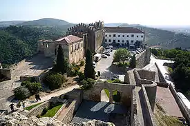 - a linha intermediária, erguida no século XV, é composta de muralhas mais robustas onde se inscrevem a praça de armas, a Igreja de Santa Maria (erguida no século XII e reedificada no Renascimento), o Convento e a Igreja de Santiago de Palmela, obras góticas.