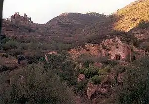 Ergue-se em posição dominante numa elevação rochosa sobre o casario abandonado de Xinquer.