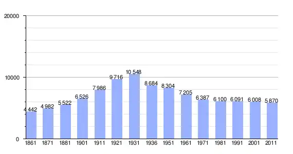 | Variação demográfica do município entre 1861 e 2011[3] |