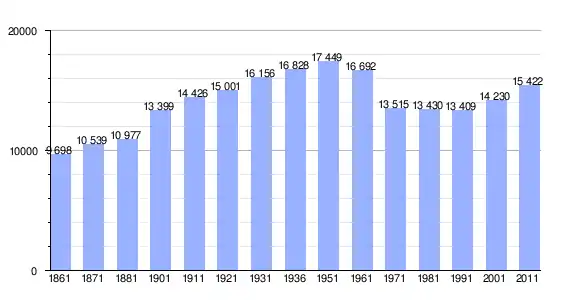 | Variação demográfica do município entre 1861 e 2011[3] |