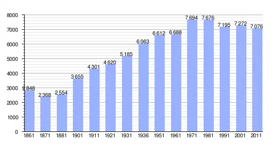 | Variação demográfica do município entre 1861 e 2011[3] |