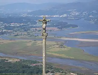 Entre as diferentes representações que ainda hoje são perceptíveis, representações geométricas, destaca-se a conhecida como Laje Sagrada ou Laje do Mapa que, situada na parte alta do monte, está composta por várias espirais, círculos concêntricos e traços lineais mais ou menos paralelos. Os seus descobridores interpretaram que se tratava de um mapa da desembocadura do Minho, hipótese que carece de fundamento cientista. Próxima a esta, entre dois muros que a tapam parcialmente, encontra-se outra rocha com gravuras similares.