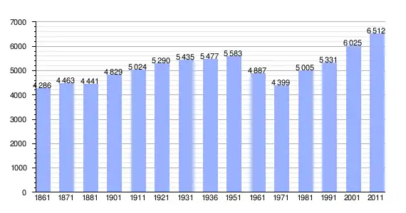 | Variação demográfica do município entre 1861 e 2011[3] |