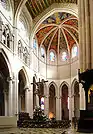Durante a segunda metade do século XVIII, as catedrais góticas foram objeto de numerosas reformas tanto interiores como exteriores. O objeto era variado, quer ocultar o templo anterior que se acreditava velho e inapropriado, quer incluir elementos artísticos compartilhados nas capelas, quer atuações em contraste com o templo anterior.[67] No primeiro caso encontra-se a fachada principal da Catedral de Pamplona, realizada por Ventura Rodríguez, considerada a obra mais importante da sua última época.[68] No terceiro caso, está a capela de Juan de Palafox e Mendoza na catedral do Burgo de Osma. Construída num espaço diferente detrás do altar-mor, contrapõem o novo e o velho, como se se tratar de dois templos diferentes de épocas diferentes. A Coroa aportou à capela os arquitetos mais prestigiosos do momento, Juan de Villanueva que a projetou e Sabatini que desenhou um plano para concluí-la.[69]