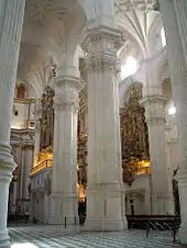 A Catedral de Granada projetou-se com a escala grandiosa da de Sevilha. Quando Diego de Siloé tomou em 1518 a direção das obras, transformou o começado edifício gótico num de estilo clássico. Para isso, substituiu os pilares por colunas clássicas sobre bases cilíndricas, e o problema da união do capitel com a abóbada resolveu-o adicionando sobre o capitel uma nova ordem de pilastras para chegar à abóbada gótica.[50]