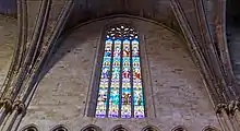 Um dos altos vitrais do lado norte tem 14 metros de altura por 3 metros de largura