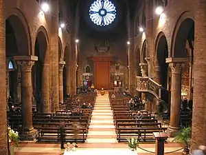 No interior, a catedral encontra-se dividida em três naves. Entre a nave central e a cripta encontra-se um parapeito de mármore desenhado por Anselmo da Campione que representa a Paixão de Cristo e inclui a Santa Ceia. O púlpito foi desenhado por Arrigo da Campione e é decorado com estatuetas de terracota. Também é interessante o crucifixo de madeira do Século XIV.