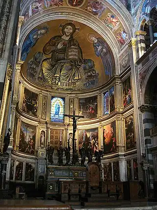 - O grande mosaico no interior da cúpula da abside, figurando o Cristo Pantocrator entre a Virgem e São João Evangelista, cujo rosto foi elaborado por Cimabue;
