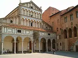 Foi construída no século X em estilo românico, possivelmente sobre uma igreja anterior. A primeira referência sobre ela é de 923. Em 1108 foi danificada pelo fogo, sendo reconstruída pouco depois. Em 1202 sofreu outro incêndio, e no fim do século XIII as naves laterais foram cobertas com abóbadas. Em 1336 um terremoto fez outros estragos. A fachada foi reformada entre 1379 e 1449 com a adição de galerias de arcos e colunas, e Andrea della Robbia foi chamado para contribuir com esculturas. Entre 1598-1614 o coro medieval foi demolido, as capelas internas modificadas e a abside original foi substituída por uma tribuna barroca coroada por uma cúpula, enquanto as paredes foram decoradas com pinturas.