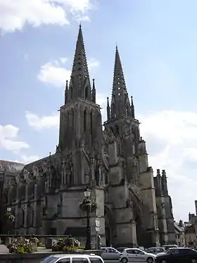 A catedral gótica data do século XIII e XIV e ocupa o local de três igrejas anteriores. A frente oeste, que é desfigurada pelos contrafortes que se projetam além dela, tem duas torres imponentes de trabalho aberto de 60 metros de altura. A nave foi construída no final do século XIII. O coro, construído logo em seguida, destaca-se pela leveza de sua construção. No coro estão quatro baixos-relevos de grande beleza que representam cenas da vida da Virgem Maria; e o altar é adornado com outro que representa a retirada das relíquias dos Santos Gervásio e Protásio. A igreja tem sido constantemente objeto de restauração e reconstrução.