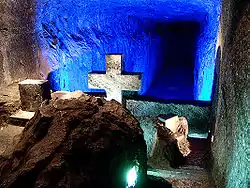 - O Via Crucis: A porta de ingresso conduz ao túnel, ao longo do qual se encontram as estações do Via Crucis, que consistem em pequenos altares talhados em rocha de sal. O túnel conduz para a Cúpula.