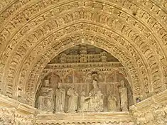 No tímpano desta fachada podem ser contempladas as seguintes cenas (Ver imagem à direita):