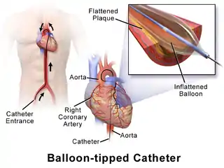 ![]() Cateter de balão sendo utilizado em uma angioplastia coronária. |
