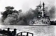Em 7 de dezembro de 1941, sem qualquer declaração prévia de guerra,[68] a Marinha Imperial Japonesa atacou Pearl Harbor com o objetivo de destruir a principal frota de batalha americana fundeada. Ao mesmo tempo, outras forças japonesas atacaram as Filipinas e o Império Britânico na Malaia, Cingapura e Hong Kong. No dia seguinte, uma declaração oficial de guerra japonesa aos Estados Unidos e ao Império Britânico foi impressa na primeira página de todas as edições noturnas de jornais japoneses.[69] As diferenças de fuso horário internacionais fizeram com que o anúncio ocorresse entre a meia-noite e as 3 da manhã de 8 de dezembro na América do Norte e cerca das 8 da manhã de 8 de dezembro no Reino Unido.