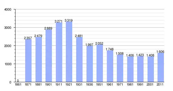 | Variação demográfica do município entre 1861 e 2011[3] |