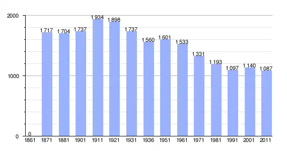 | Variação demográfica do município entre 1861 e 2011[3] |