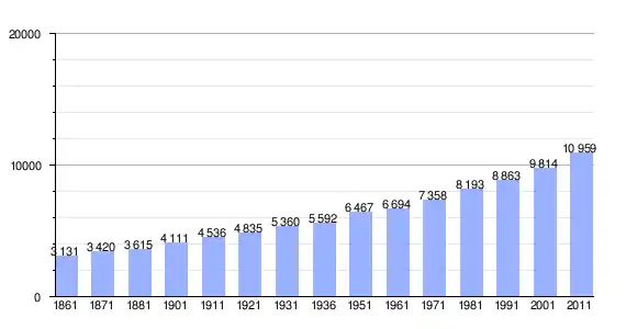 | Variação demográfica do município entre 1861 e 2011[3] |