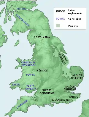 - A topografia geral dos reinos do século VII é dada na forma de mapa em Hunter Blair 1966, p. 209.