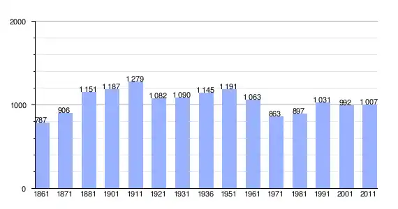 | Variação demográfica do município entre 1861 e 2011[3] |
