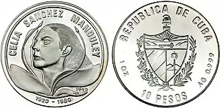 In the years following Celia's death, special medals and commemorative stamps were issued with her image; her portrait is the watermark on several pieces of the country's currency; a Spanish ballet was named for her; her name is on schools, hospitals, and various community centers, from Cuba to Zimbabwe." "People of Manzanillo commonly use the monument as a marriage altar.