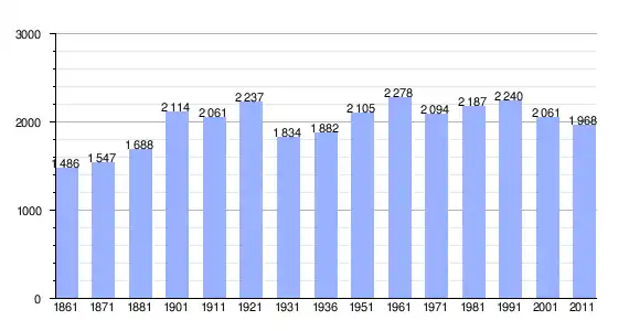 | Variação demográfica do município entre 1861 e 2011[3] |