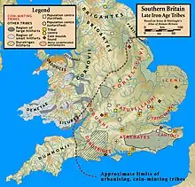 A única descrição sobrevivente das populações da Idade do Ferro das Ilhas Britânicas é a de Píteas, que viajou na região à volta de 325 aC. Os primeiros nomes tribais registados até ao século I dC (Ptolomeu, César; e também na cunhagem), representando a situação ao momento da conquista romana.