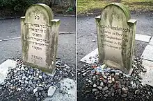 Atualmente, a pedra sepulcral de Mendelssohn é a única que no cemitério. No entanto, esta é a terceira cópia da pedra original. A pedra original, relativamente simples, cuja aparência é conhecida por uma gravação em cobre de Wilhelm Chodowiecki (1765-1805), filho de Daniel Chodowiecki, foi substituída em 1896 por um cópia, um monumento de granito com uma inscrição dourada. Após a destruição pelos nacional socialistas seguiu em 1962 uma lápide retangular simples. A pedra atual, erguida em 1990, reverte para sua forma original. Uma vez que não se conhece a localização exata do túmulo de Mendelssohn, a lápide está aproximadamente no local do túmulo.