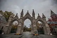 Existem muitas obras de arte na propriedade, algumas das quais são independentes, mas a maioria das quais está associada a um túmulo. Exemplos notáveis incluem: