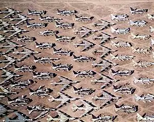 O cemitério da Base Aérea de Davis-Monthan pertence ao governo dos Estados Unidos, tem área de dez milhões de metros quadrados e atualmente abriga mais de quatro mil aeronaves civis e militares.[5]