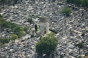 Vista do cemitério Montparnasse do topo da Torre Montparnasse (Paris, França).