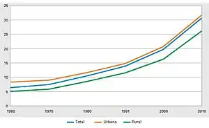 A proporção de brancos havia diminuído de 53,7% em 2000 para 47,7% em 2010,[5][6] além de a população brasileira ter ficado mais velha. O índice de envelhecimento da população havia saltado de 19,8% em 2000 para 30,7% em 2010.[6][7]