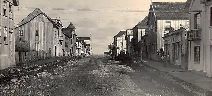 Nesta época poucas eram as edificações de alvenaria, quase todas eram casarões de madeira, e mesmo grandes pavilhões industriais eram erguidos em madeira, sendo preferida a araucária, então abundante na região. A pavimentação do centro tardaria muito. Até chegar à intendência o coronel José Pena de Moraes, o centro teria ruas de terra batida com cascalhos, e apenas algumas ruas com passeios calçados nas laterais. O principal foco da atenção oficial nas primeiras décadas foi a organização da Praça Dante e da Rua Grande, iniciando-se obras para o aplainamento e rebaixamento do terreno, processo retardado e complicado pela existência de uma grande pedreira na área.[7][5]