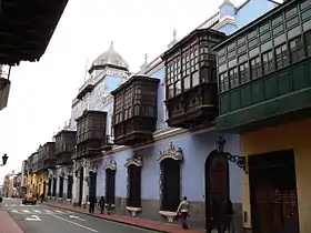Nas edificações do centro histórico de Lima há muitas sacadas da época republicana que outorgam uma característica muito singular a Lima. Para lograr sua conservação, a Municipalidade Metropolitana de Lima na gestão de Alberto Andrade Carmona, convidou a particulares e a empresas a adotar uma sacada a fim de conservá-las tal como foram em sua origem. A profusão destas sacadas lhe dão uma particular harmonia e originalidade