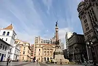| Pátio do Colégio, com o Museu Anchieta (à esquerda) e os prédios da Secretaria da Justiça e do Tribunal de Justiça (à direita) | |