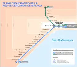 Com origem na estação de Málaga Centro-Alameda, esta linha dirige-se até ao Aeroporto de Málaga e à parte sudoeste da Costa do Sol até chegar a Fuengirola. A linha é de via única e com alguns tramos em via dupla, está electrificada e a frequência de passagem dos comboios é de 30 minutos.