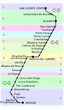 | Murcia del Carmen - Lorca - Águilas | 118 | |
