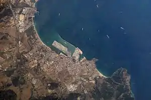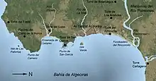 A cidade ao sul, Albinia (Al-Binya), chamada de Vila Nova (Villa Nueva) pelos espanhóis, foi construída pelos merínidas de Abu Iúçufe Iacube ibne Abdalaque em 1285. Ficava em um planalto que outrora abrigou o bairro industrial de Júlia Traducta, a romana Algeciras.[16] A inclinação do seu perímetro ajudou na sua defesa, pelo que não foi necessário construir defesas tão fortes como as da Vila Velha. A Vila Nova abrigava a fortaleza e as tropas que haviam sido estabelecidas na cidade. Algeciras tinha cerca de oitocentos cavaleiros e doze mil besteiros e arqueiros, com uma população total de trinta mil pessoas, de acordo com informações de cativos dadas ao rei de Castela nos primeiros dias do cerco.[17]