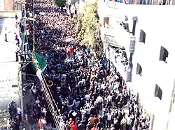 Em 15 março de 2011, uma série de protestos anti-governo tomaram conta das grandes cidades da Síria.[15] As manifestações chegaram a Homs em 18 de março.[16] Os protestos continuaram em abril, mas o governo decidiu enviar tropas do exército para retomar o controle total da cidade. O resultado foi centenas de mortes entre os manifestantes.[17]