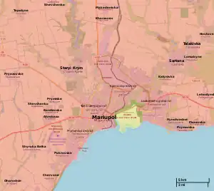 Batalha de Mariupol ou Cerco a Mariupol[18] foi um conflito militar que teve origem com a invasão da Ucrânia pela Rússia em 2022. Mariupol é uma estratégica cidade litorânea localizada no oblast de Donetsk, que separatistas clamam pertencer à República Popular de Donetsk.[19]