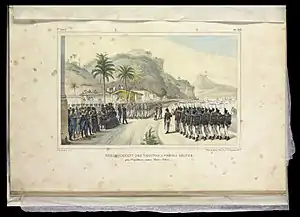 ![]() Embarque das tropas brasileiras ao cerco de Montevideo | |||