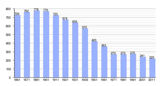 | Variação demográfica do município entre 1861 e 2011[3] |