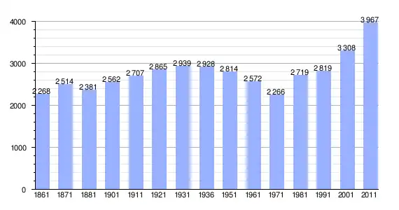 | Variação demográfica do município entre 1861 e 2011[3] |