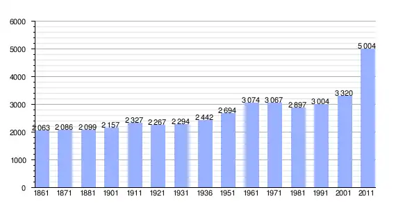 | Variação demográfica do município entre 1861 e 2011[3] |