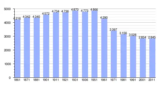 | Variação demográfica do município entre 1861 e 2011[3] |